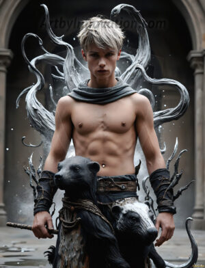 Handsome AI-generated young princes alongside magnificent dragons — obsidian scales, silver wings, and stunning fantasy backdrops.