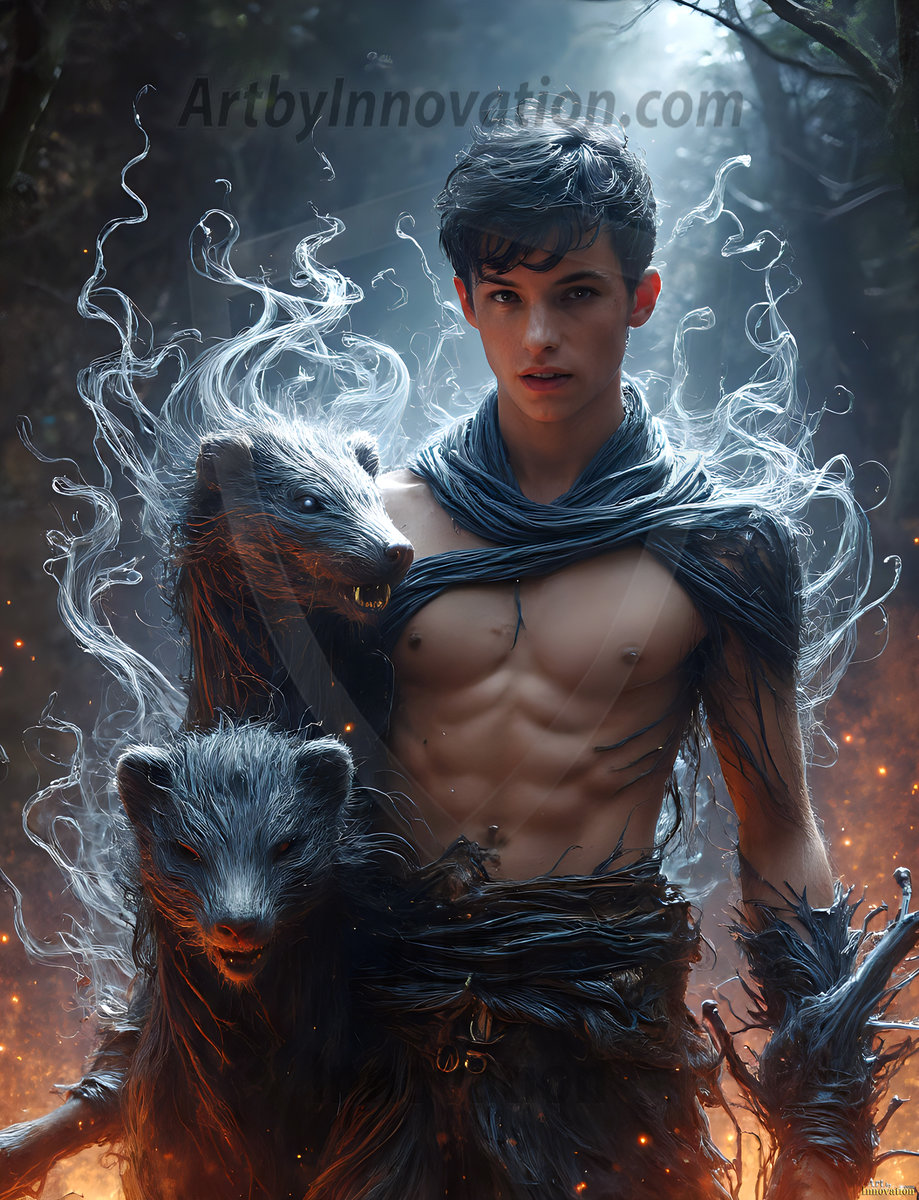 AI-generated abstract art — hot handsome men covered in colorful body paint explosions, full of joy and rainbow color.