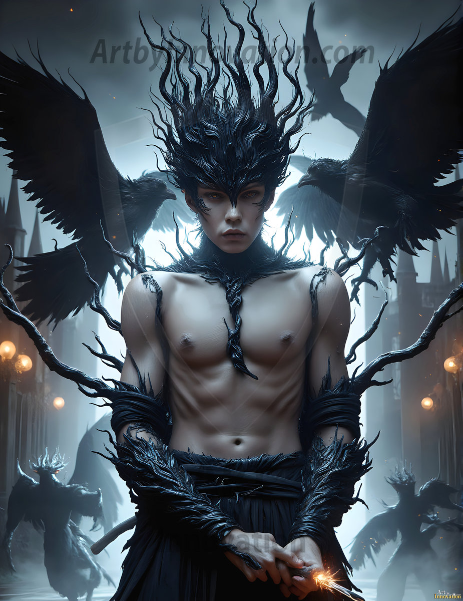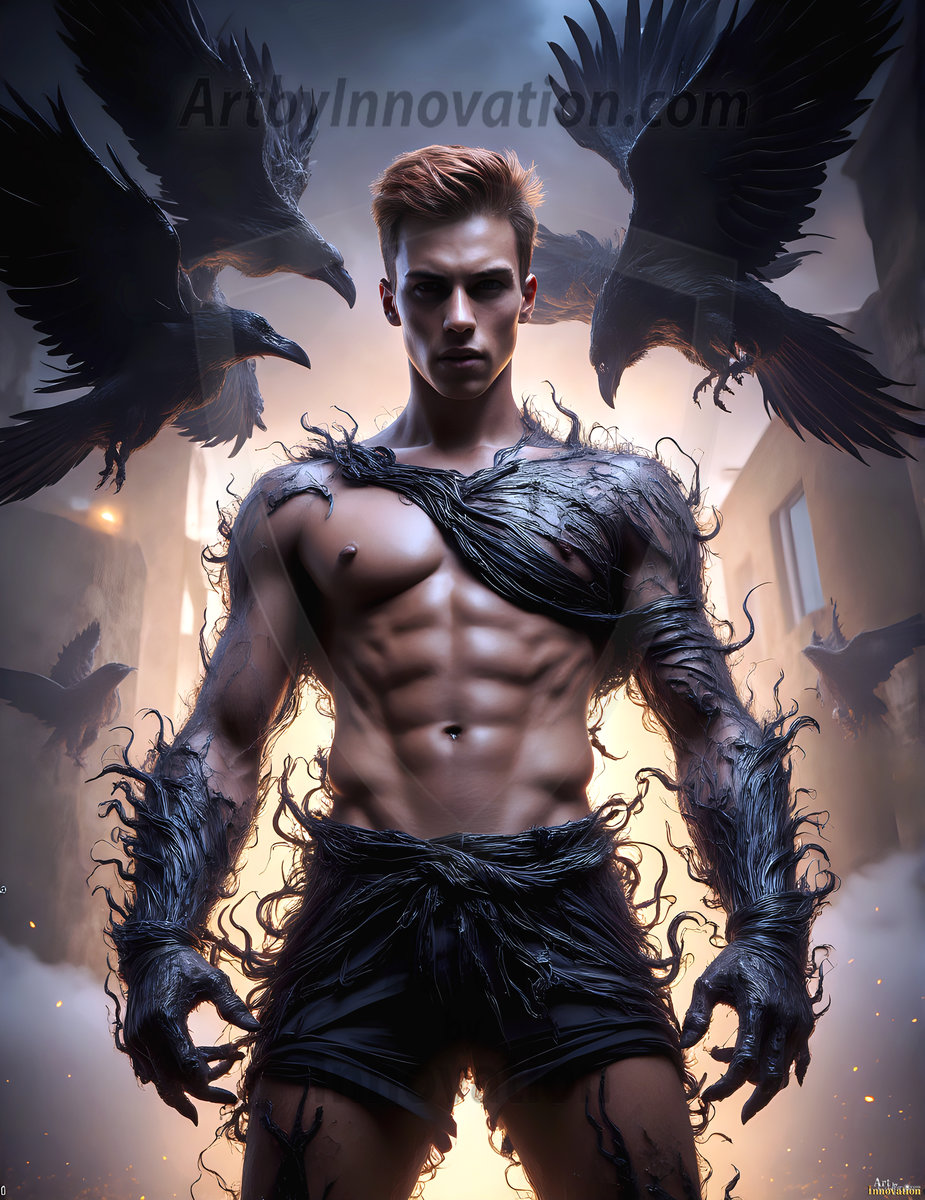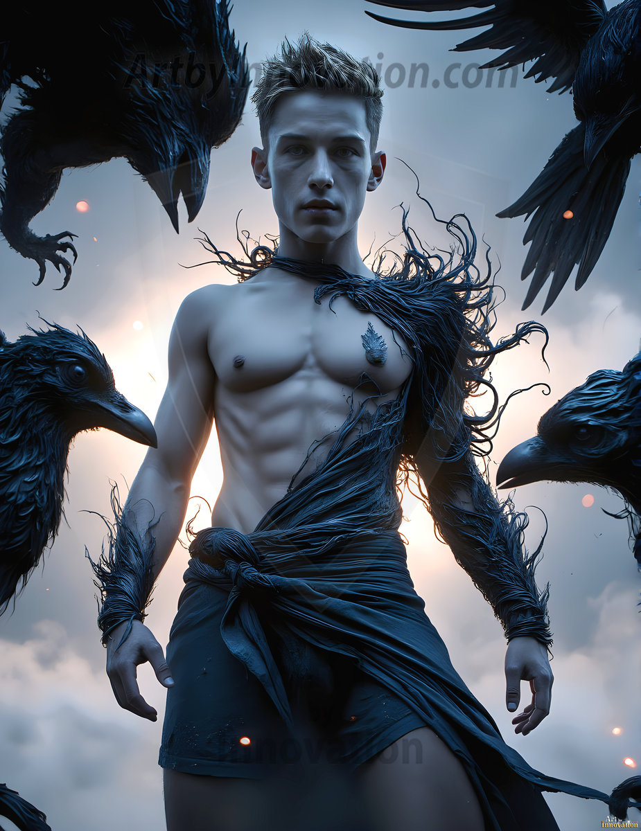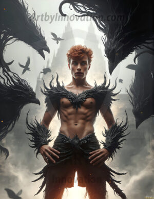 Beautiful AI-generated male angels with enormous vibrantly colored shimmering wings — divine power in full breathtaking color.