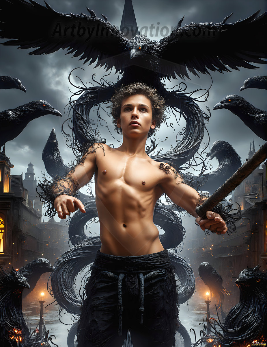 AI-generated abstract art — handsome men controlling swirling vortexes of vibrant colorful fluid and water in motion.