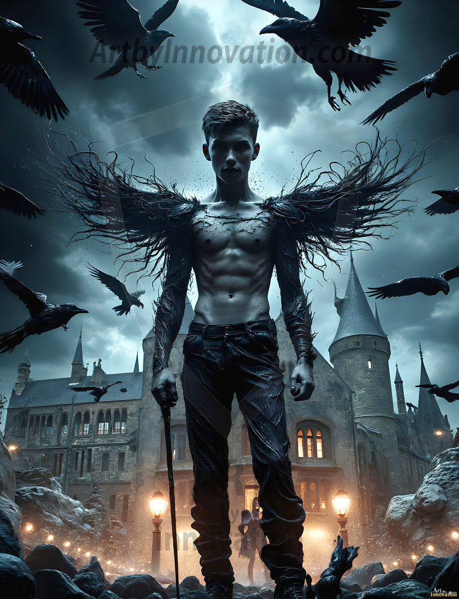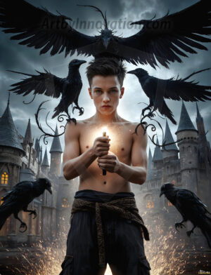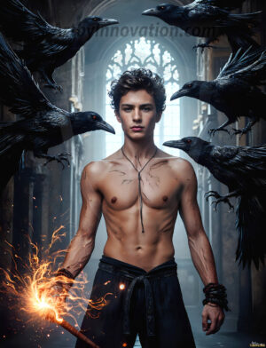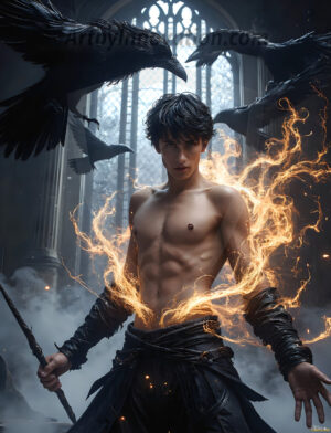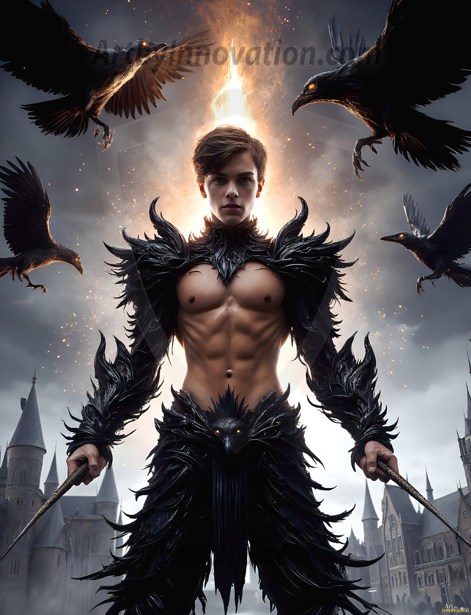 Handsome AI-generated Gryffindor wizards conjuring lions at Hogwarts castle — brave, powerful, and strikingly beautiful.