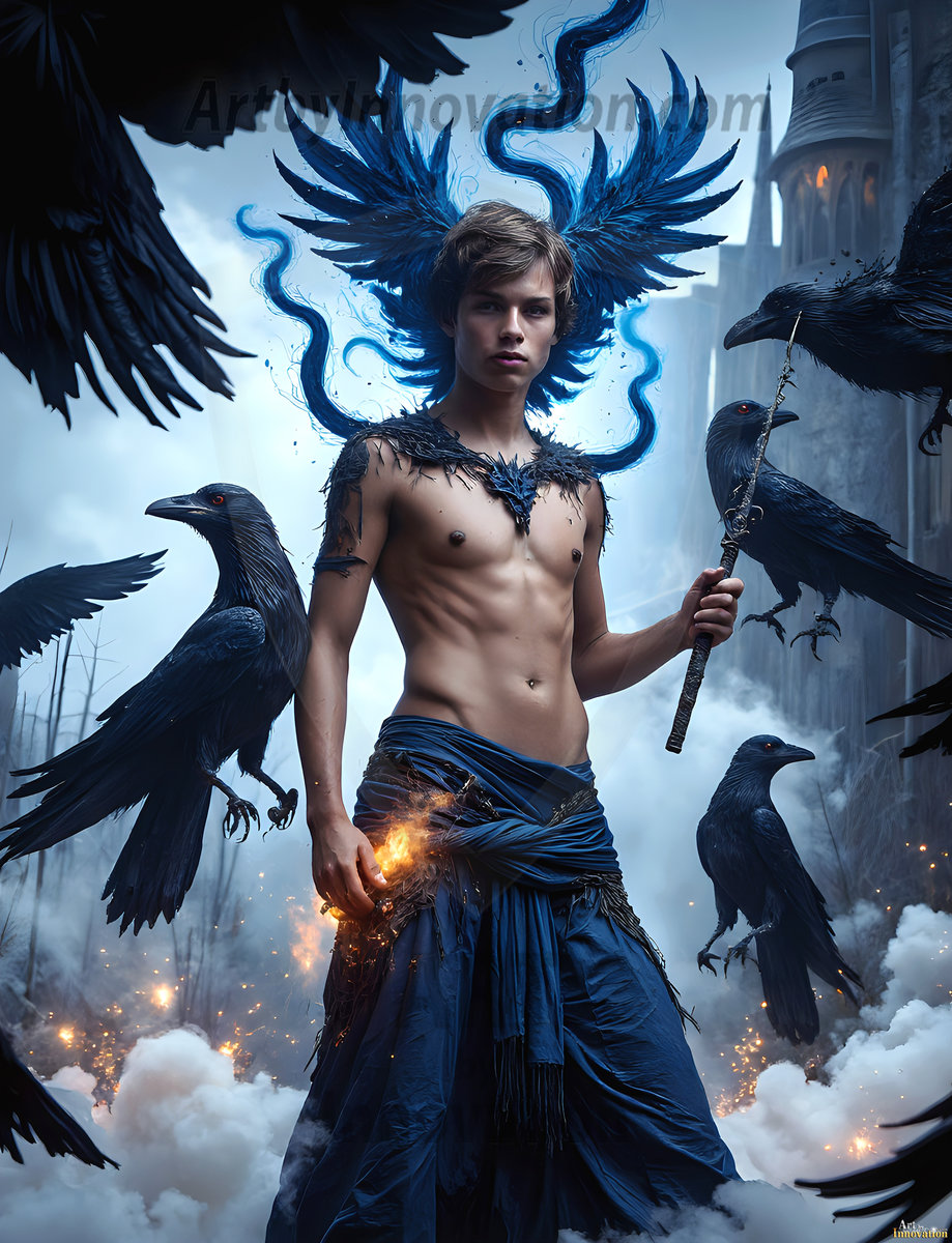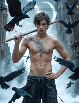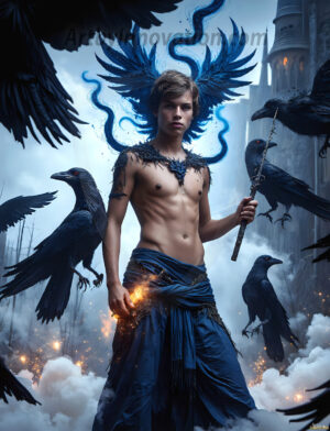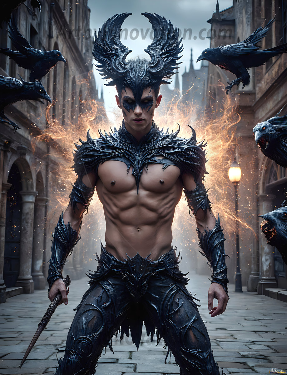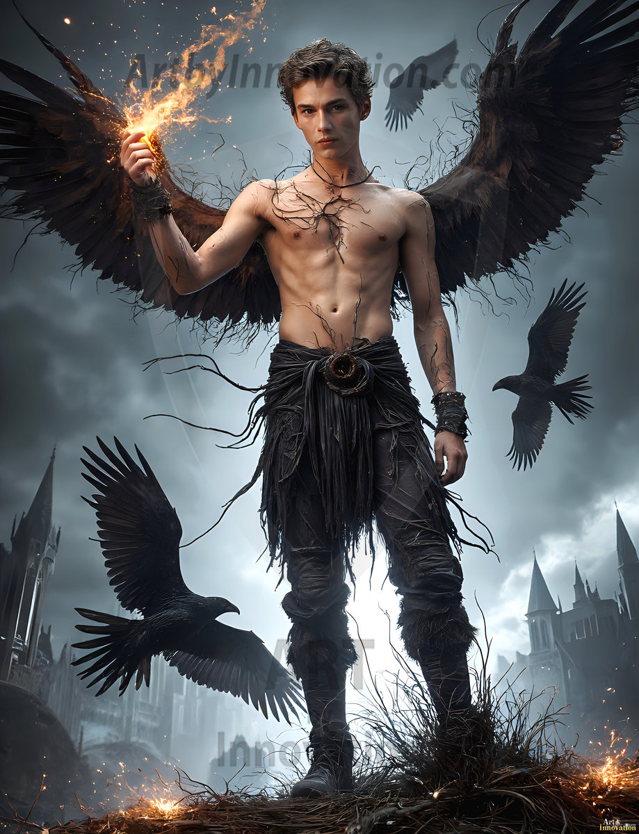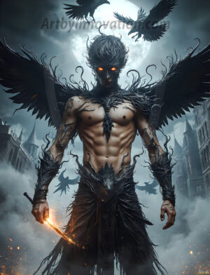 AI-generated hot male demons with dark wings and glowing eyes — handsome, dangerous, and seductive from the ruins of hell.
