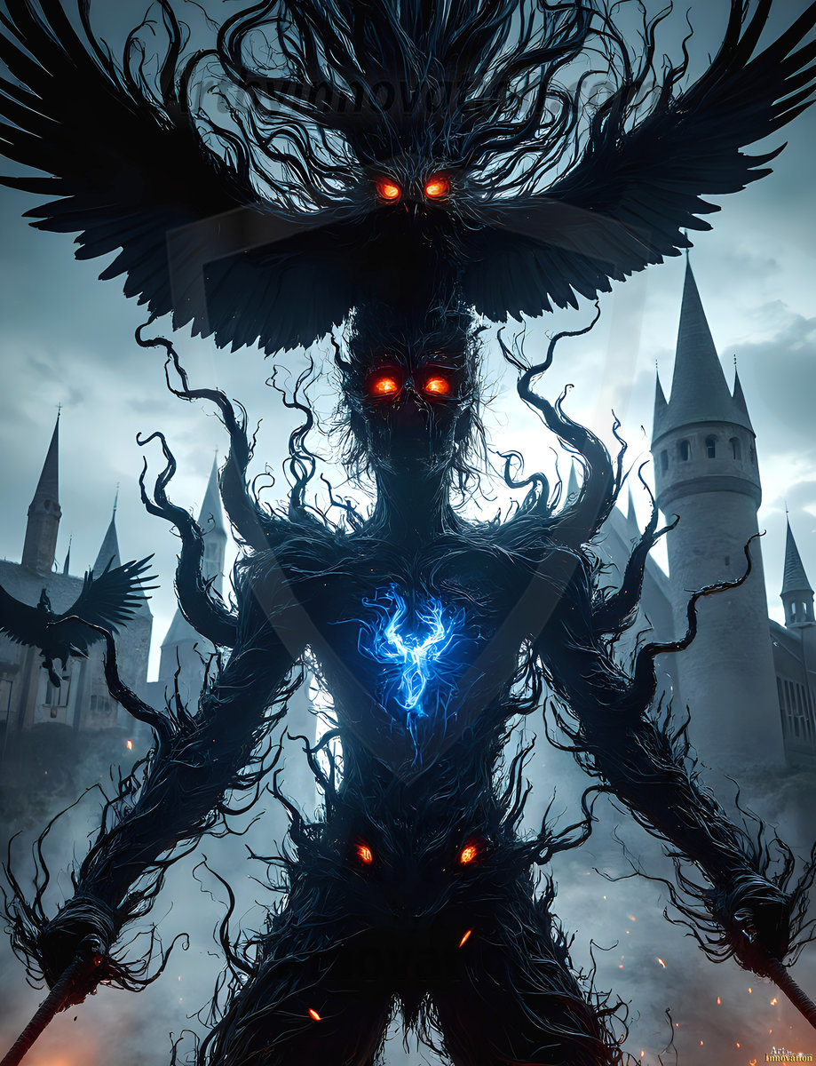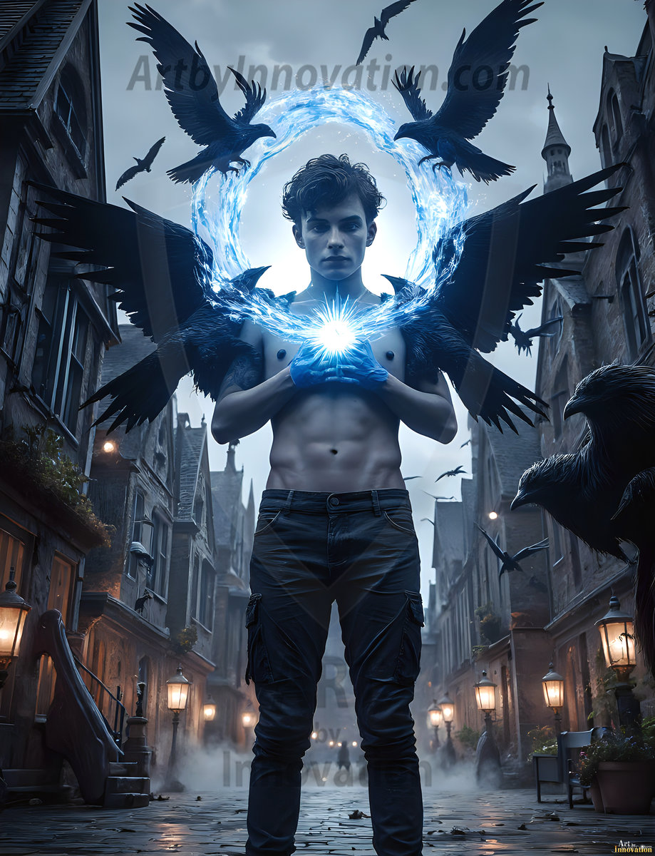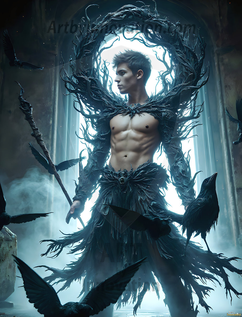 AI-generated hot male demons with dark wings and glowing eyes — handsome, dangerous, and seductive from the ruins of hell.