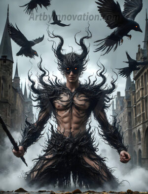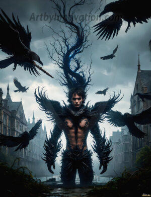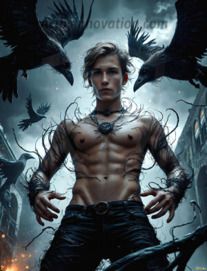 AI-generated abstract art — handsome men controlling swirling vortexes of vibrant colorful fluid and water in motion.