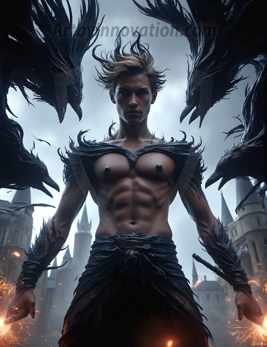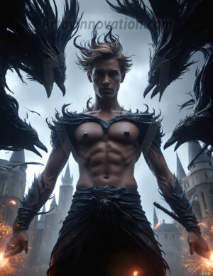Handsome AI-generated Gryffindor wizards conjuring lions at Hogwarts castle — brave, powerful, and strikingly beautiful.