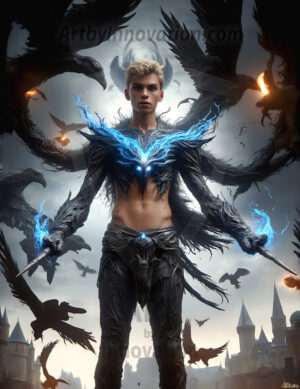 Handsome AI-generated young princes alongside magnificent dragons — obsidian scales, silver wings, and stunning fantasy backdrops.