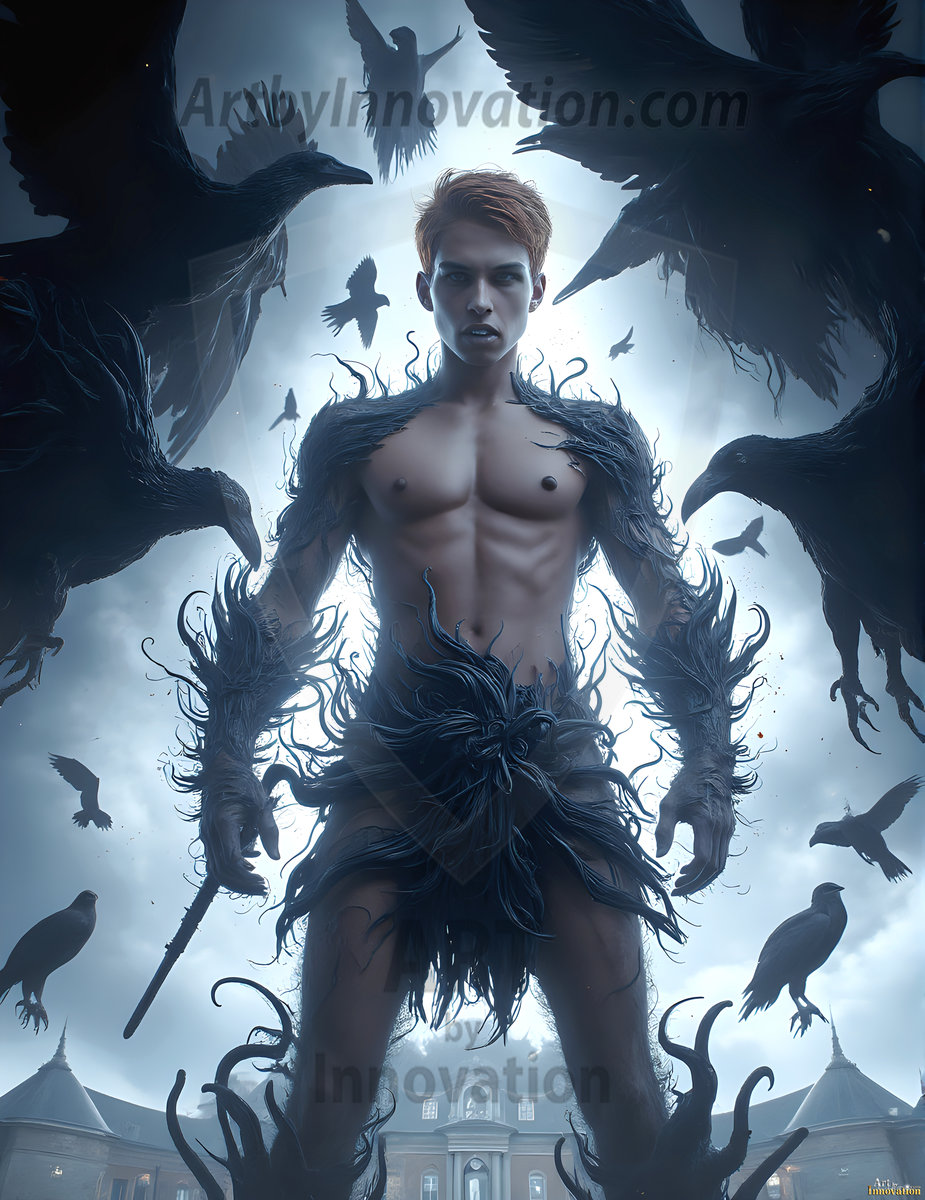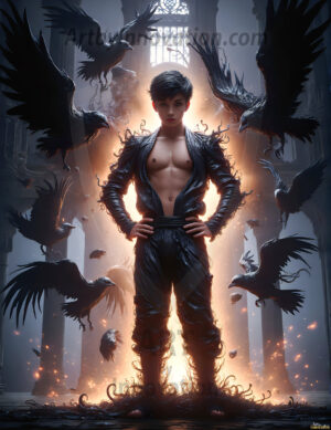 Handsome AI-generated male fairies with enormous shimmering crystal wings in enchanted fantasy forests.