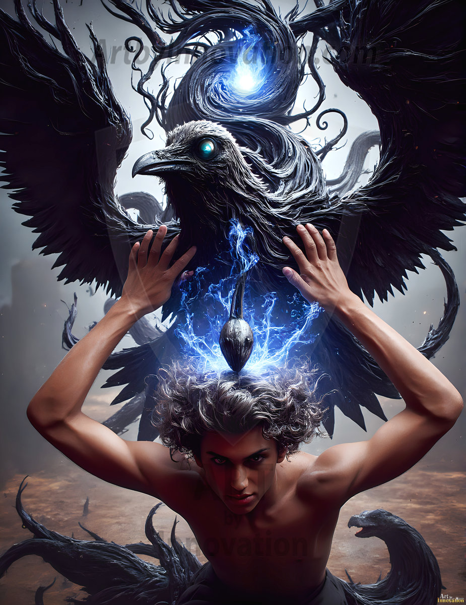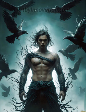 Handsome AI-generated elemental angels with vibrant wings deep in enchanted forests — nature, magic, and divine power united.