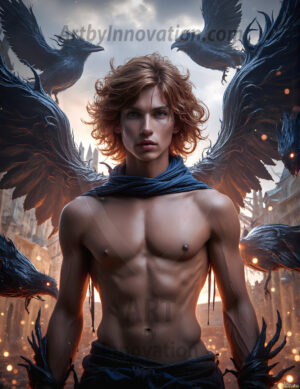 Handsome AI-generated male fairies with enormous shimmering crystal wings in enchanted fantasy forests.