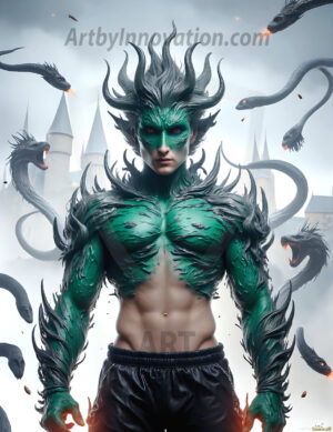 AI-generated mermen warriors with shimmering obsidian scales, tridents, and vibrant coral reef underwater scenes.