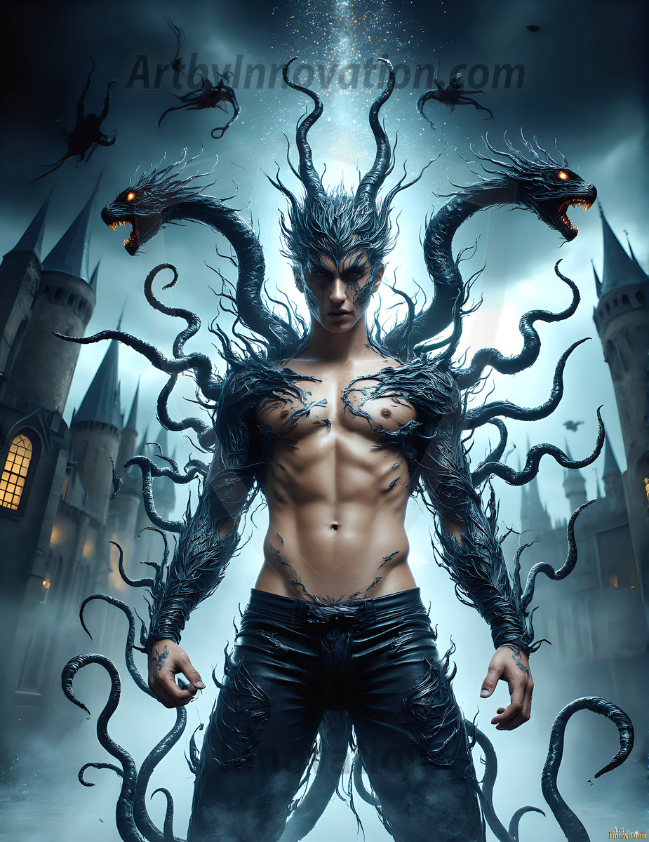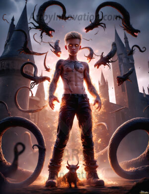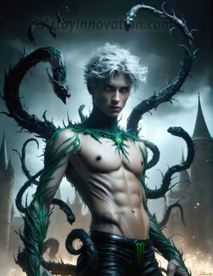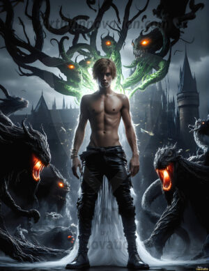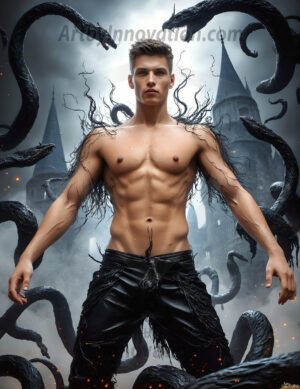 AI-generated dark fantasy art of handsome young male zombies in cinematic apocalyptic settings — beautiful and terrifying.